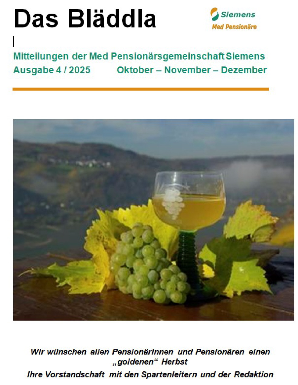 "Das Bläddla“ ist unser wesentliches gedrucktes und digitales Kommunikations-Instrument. Es erscheint vierteljährlich und beinhaltet allgemeine Mitteilungen wie Berichte der Sparten über durchgeführte und geplante Aktivitäten, den Terminkalender fürs nächste Quartal sowie die Jubilarliste (Geburtstage). Die Beiträge bekommen wir von unseren Mitgliedern und werden in der Redaktion betreut von Sibylle Senkel